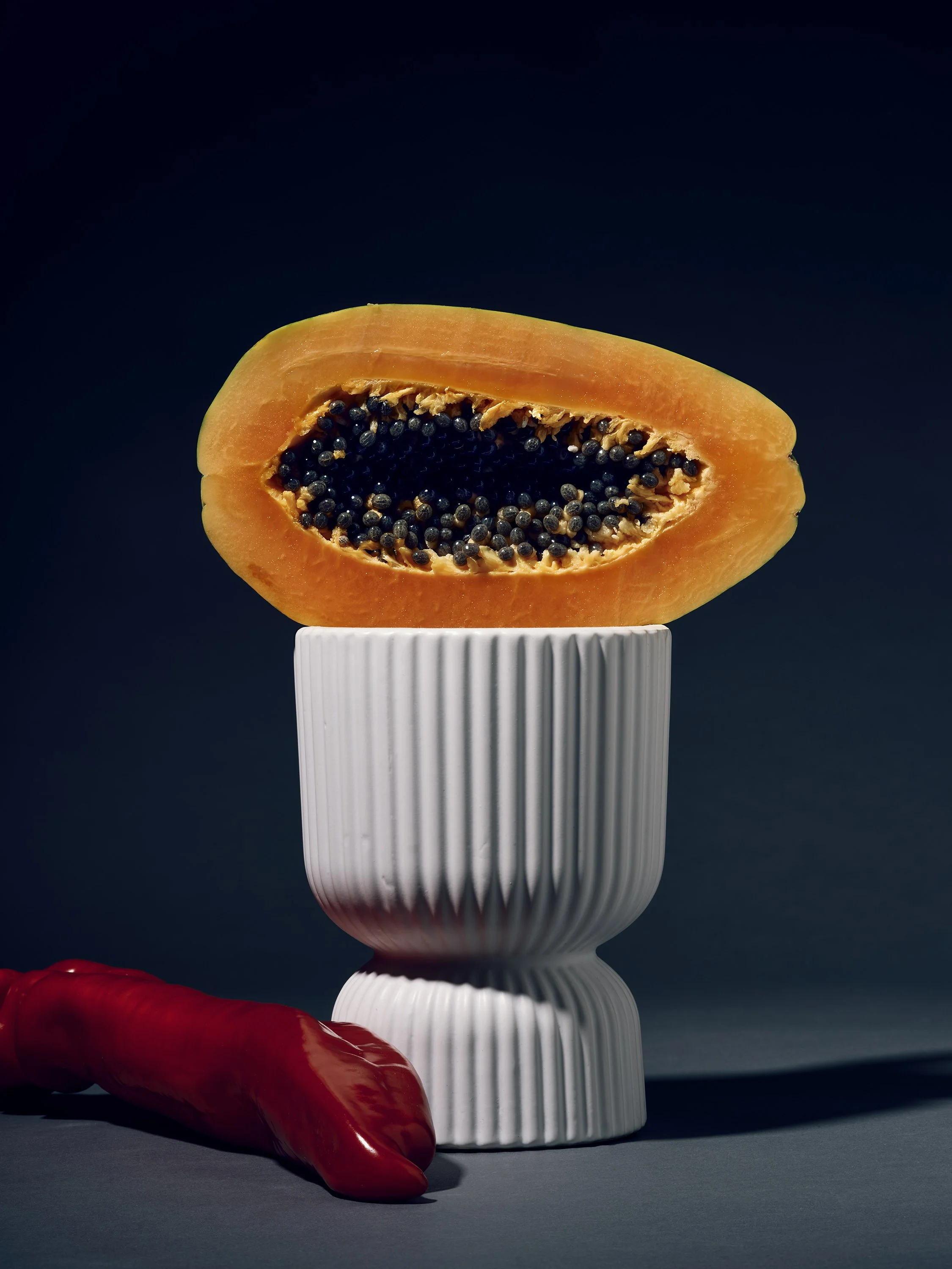 Personal projects like this are where I get to experiment, make mistakes, follow instincts, and occasionally surprise myself. They also serve as a reminder that the same eye that reads proportion and light in an architectural space can find something just as interesting in a halved papaya.